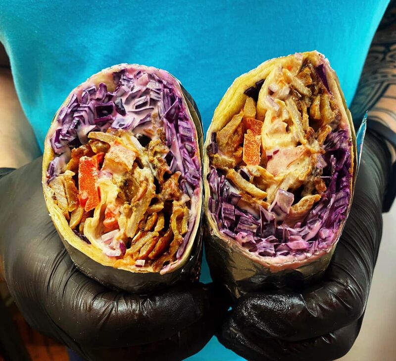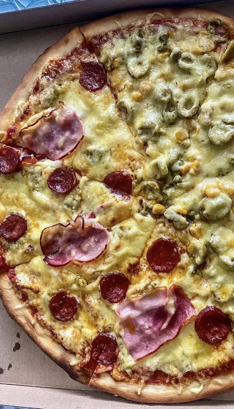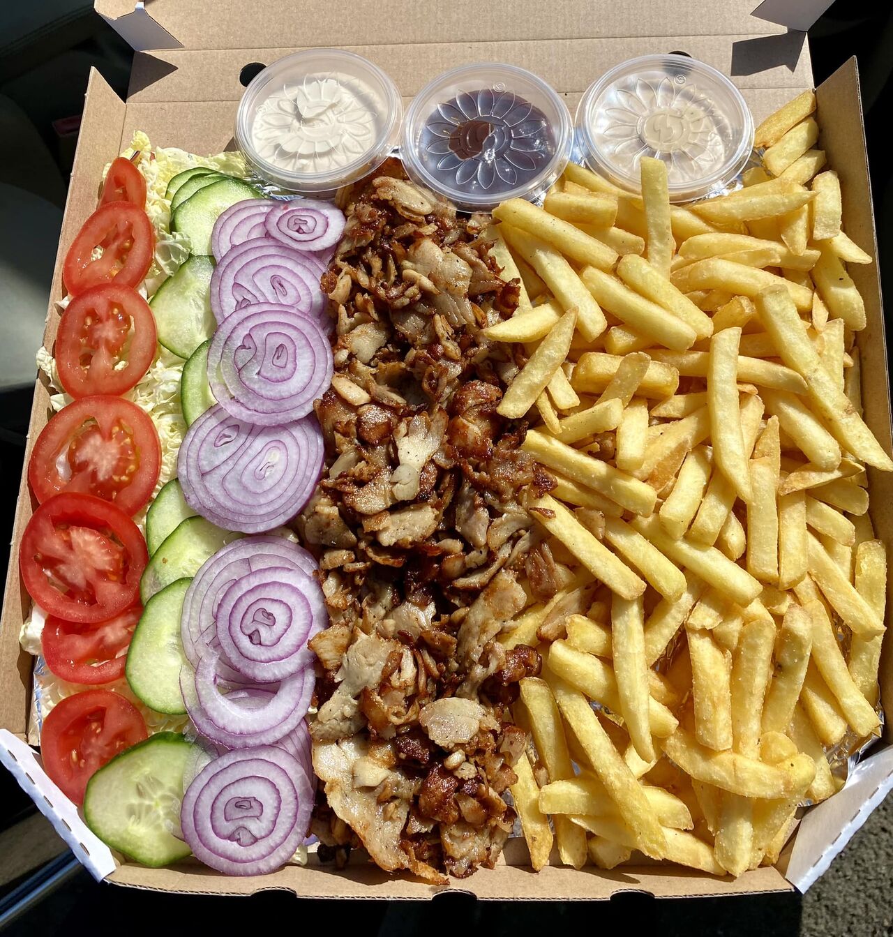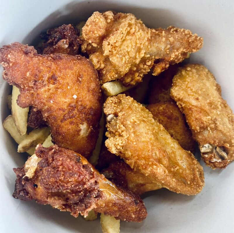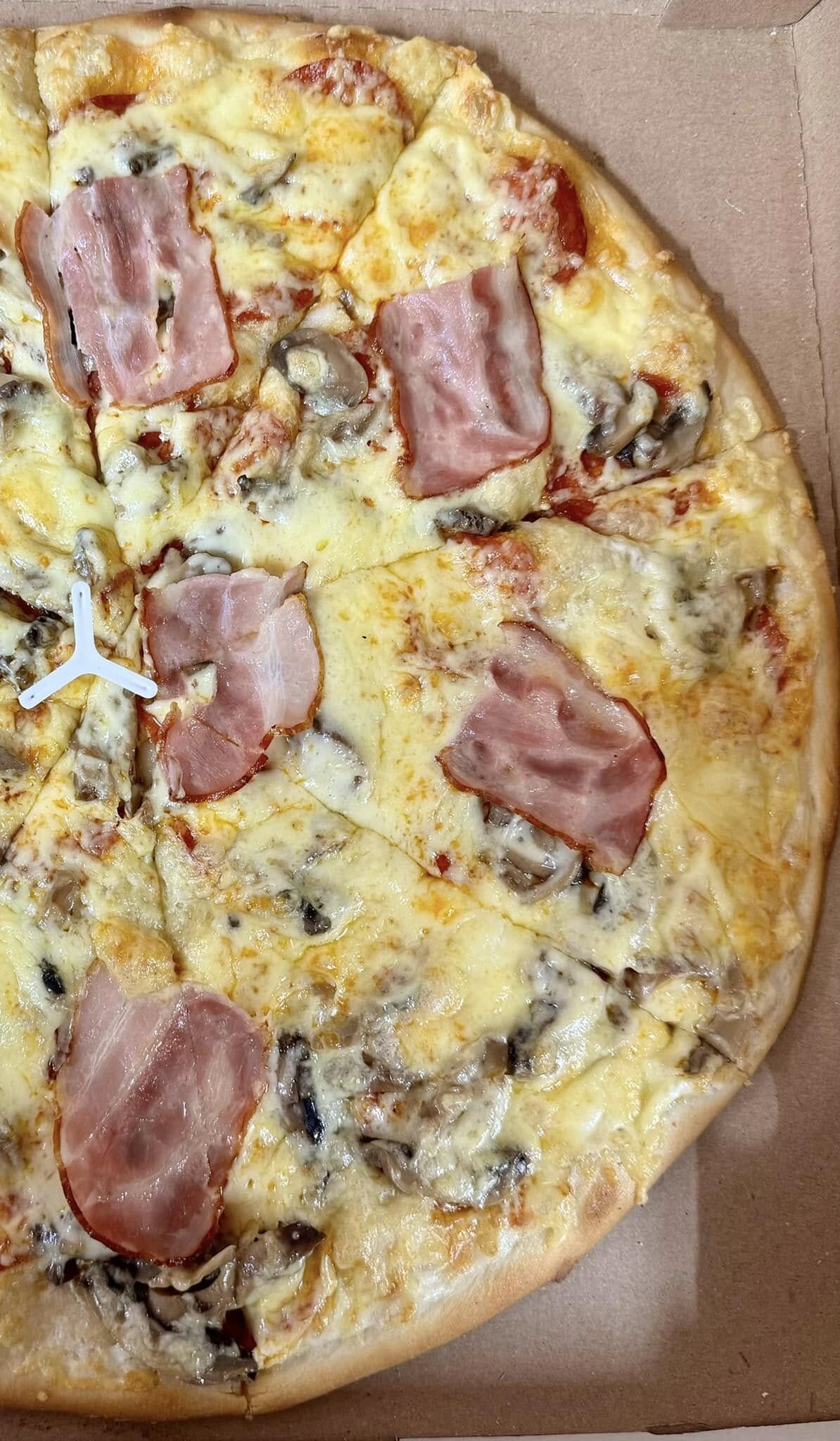 žemľa , mäso , slanina , sriracha omáčka ,cheddar v chrumkavom obale , kyslá uhorka , chic omáčka , cheddar plátok , karamelizovana cibuľa